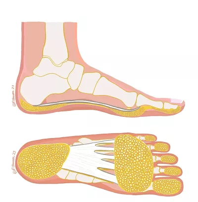Jahss, M. H. et al. "Investigations Into the Fat Pads of the Sole of the Foot: Anatomy and Histology." Foot & Ankle 13 (5), (1992): 233-42. https://pubmed.ncbi.nlm.nih.gov/1624186.
