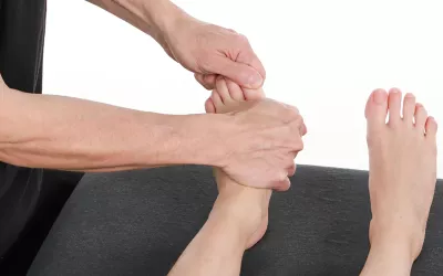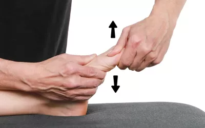 If the client reports mild pain and stiffness in their big toe, I begin by performing graded exposure stretches to the lower leg muscles to decrease protective muscle guarding. I continue with techniques that warm and mobilize the foot's soft tissues. Finally, I perform these five myoskeletal alignment techniques on both feet to address big toe function directly.
