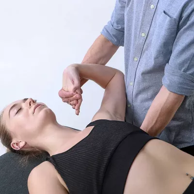 Having cleared the subclavius and pec minor, we'll move into this series of techniques for the arm and forearm to reduce muscle tension, roll fascial sacs across associated structures, and release adhered tissue. These techniques also introduce the brain to novel stimuli that capture the brain's attention and help down-regulate sympathetic nervous system activity, releasing the region from protective muscle guarding. Integrate these techniques with methods you already use in your practice, such as applying friction strokes to the edges of the flexor and extensor muscles.