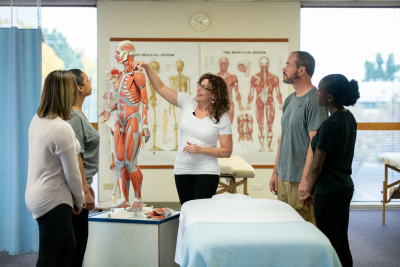 A massage instructor teaching an ABMP Student