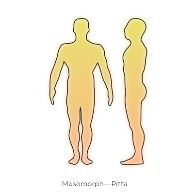 If the mesoderm becomes the governor of the three layers, the musculoskeletal system and blood predominate. These folks tend to be harder of body, more athletic, with even weight distribution and thicker skin. Mesomorphs are seen as more extroverted, competitive, and tough. Maybe a bit like pitta?