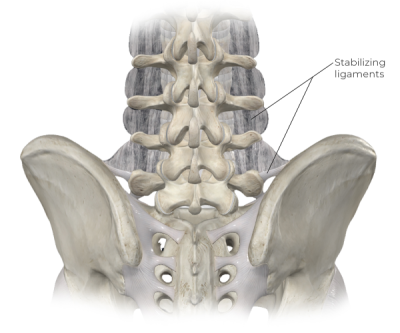 Smaller ligaments connecting transverse processes, spinous processes, and adjacent bones like the pelvis are more susceptible to sprains (Image 2). These smaller ligaments farther away from the body’s center are more likely to suffer an actual sprain. However, pinpointing a specific sprained ligament in the spine remains challenging due to the complex anatomy and spinal mechanics.