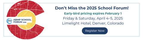Registration and early-bird pricing for the 2025 School Forum is open now at abmp.com/school-forum. The event schedule and more details will be coming soon. NOTE: ABMP Premier School members receive one free registration to the event through January 31, 2025 (hotel and airfare not included) and Enhanced School members receive a $100 discount. ABMP School members, contact your school liaison to get your free or discounted registration at education@abmp.com or 800-458-2267.