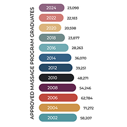 ABMP completed its biennial school graduate census for massage programs and the results show massage school graduations increased slightly in the past two years.