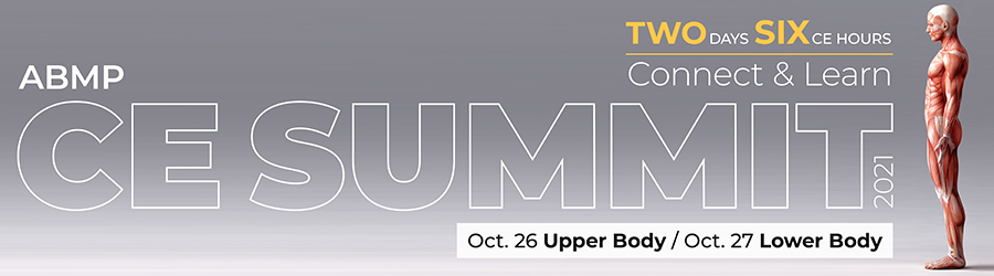 This online education conference focuses on essential tools for the upper body on day one and the lower body on day two. Don’t miss this opportunity to interact with the course instructors live online, learn tools to help your practice, and connect with your massage and bodywork community! Learn more and save your spot by registering at abmp.com/summit.