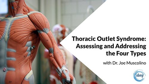 This week’s new webinar is "Thoracic Outlet Syndrome: Assessing and Addressing the Four Types" with Dr. Joe Muscolino. Join Dr. Joe Muscolino for a comprehensive course on thoracic outlet syndrome (TOS). Learn to distinguish between the four types of TOS—anterior scalene syndrome, costoclavicular syndrome, pectoralis minor syndrome, and cervical rib thoracic outlet syndrome—through an in-depth look at the signs, symptoms, and causes of each type. Enhance your ability to assess and treat clients with TOS through orthopedic assessments, palpation, massage techniques, and stretching.