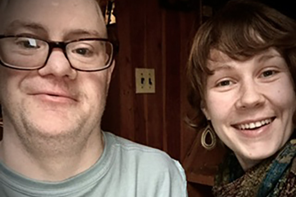 George grew up helping to take care of Mack, her brother who is 15 years her senior. Mack was born with Down syndrome and suffered heart complications. Mack was considered “low functioning” by the medical field due to his limited speech and learning abilities, George says. Plus, Mack didn’t like touch. Or so George thought.