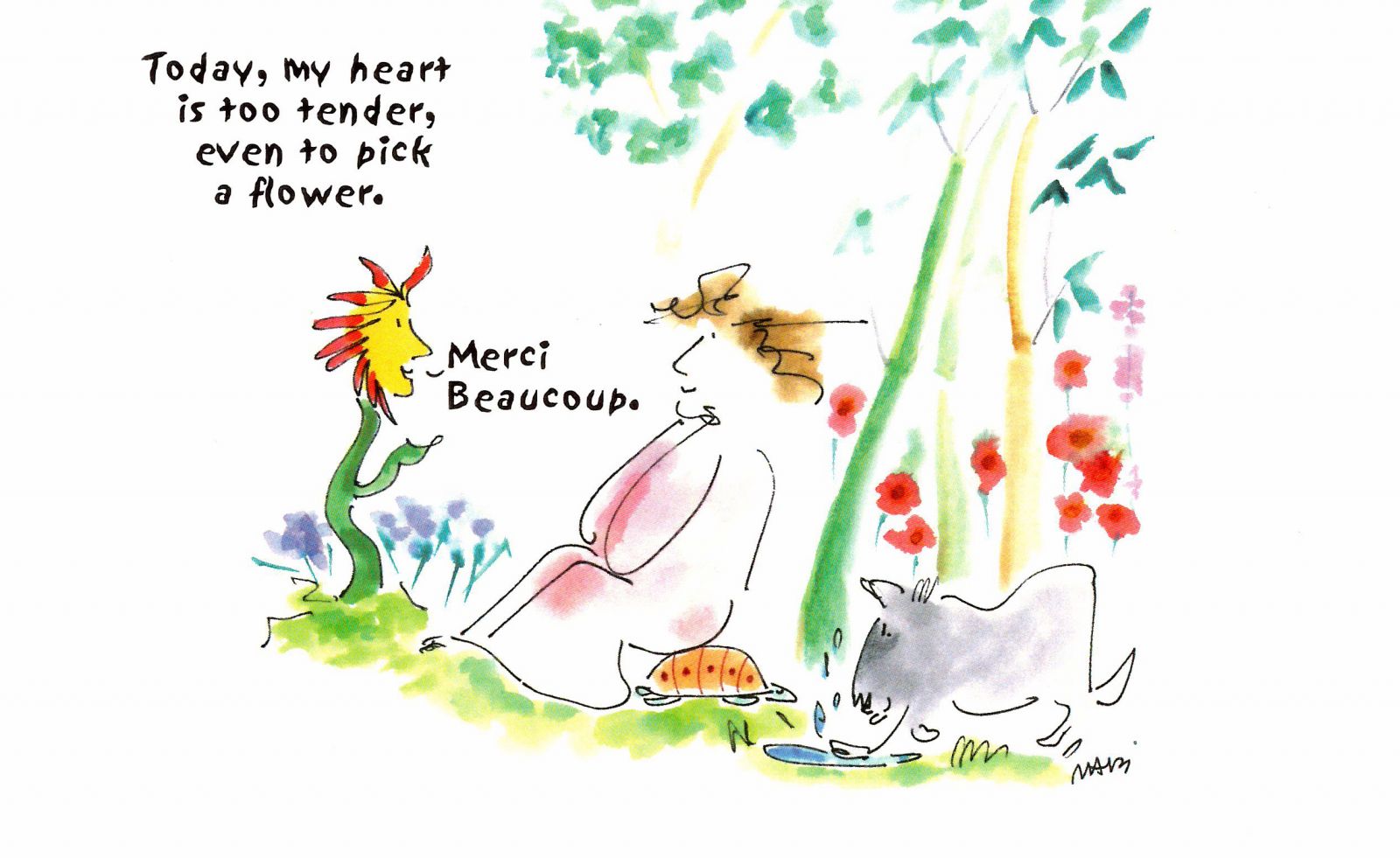 Mari’s drawings were the wit and color palette to the powerful prose from massage therapy ethics icon Nina McIntosh. Theirs was an effective alliance through all versions of McIntosh’s The Educated Heart ethics textbook first published in 1999.